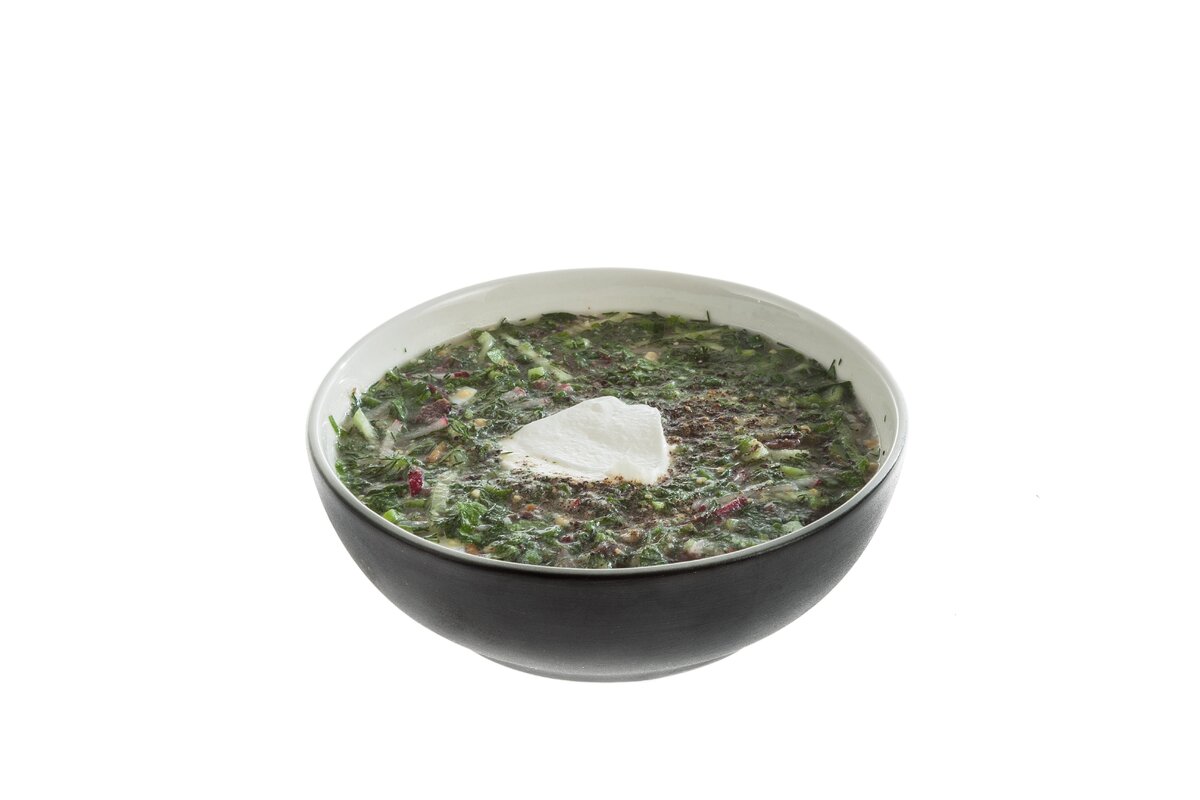 4. Выложить окрошку в порционные тарелки, посолить и поперчить по вкусу, залить квасом и подавать со сметаной.