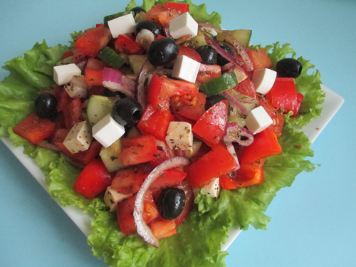 Лёгкий, вкусный и невероятно полезный салат. Главным компонентом, которого является фета - это греческий сыр, содержащий овечье или козье молоко, благодаря этому сыру салат получается питательным. Особенность этого салата заключается в крупно порезанных овощах, щедро приправленных оливковым маслом с душистым орегано. Ингредиенты: (Количество ингредиентов рассчитано на 4 порции) Для заправки: Процесс приготовления: Подготавливаем все необходимые ингредиенты. Очищаем и хорошо промываем овощи под водой, если требуется, просушиваем их. Нарезаем все овощи, крупными кубиками.