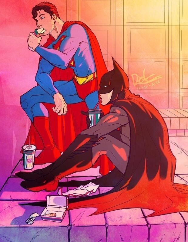 Бэтмен и супермен в дозоре. Распоясалась преступность Нет управы на злодеев Наводнили гетто воры, Наркоманы, банды, геи. Хмуро брея подбородок Брюс рассерженно вздыхал Рано вышел на покой я В городе настал аврал. Лет уж пять сижу без дела Стал я малость староват Натянул бэтмен-лосины На худой отвисший зад. Надевая бронипанцирь Что есть сил втянул живот Что-то я слегка разъелся Да, вот это поворот. Может взять крутую пушку? Может новый бэторанг? Из кевлара сеть, воздушку? Взять разведчик бумеранг? Всё тащить мне не по силам Этак можно и упасть Дряблым выглядеть кретином Что-то мне совсем не в масть. Позвоню ка Супермену Подежурю с ним вдвоём Гаджеты я брать не буду Отстегаю всех ремнём.