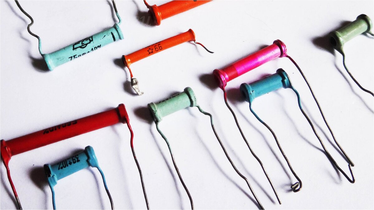 Серебряные конденсаторы с керамической изоляцией очень разноцветные. Эти разноцветные детали легко со старыми резисторами. Раньше резисторы делали на керамическом основании в форме трубки наматывая на неё проволоку разного удельного сопротивления. Но на снимке перед вами россыпь керамических серебряных конденсаторов трубчатой формы. Их правильное название -= КТК= - Конденсатор трубчатый керамический. В качестве диэлектрика между электродами используется керамическая трубка,а обкладки из серебра. КТК широко применялись в колебательных контурах ламповой аппаратуры с 40-х по начало восьмидесятых годов. При настройке раньше ламповых , а теперь транзисторных приемников часто приходилось подбирать конденсаторы входных контуров и гетеродинов. В случае использования в схеме конденсаторов КТК, подбор емкости конденсаторов в этих контурах можно упростить изменив емкость самого конденсатора. Для этого припаяв к выводу внутренней обкладки отрезок медного провода, на корпус конденсатора рядом
