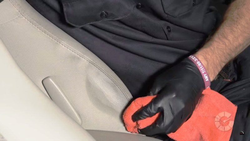 В большинстве автомобилей сиденья обтянуты тканью. Это дешёвое и практичное решение, но любая ткань имеет свойство со временем пачкаться. Как же очистить её наиболее простым и быстрым способом? Итак, для этого понадобится очиститель ткани, кисть, полотенце из микрофибры, жёсткое полотенце и пылесос. Прежде всего нужно тщательно пропылесосить сиденья, уделяя особое внимание швам, чтобы удалить из них мусор и скопившуюся пыль. Затем слегка распылите очиститель ткани на поверхность сиденья. Не перестарайтесь с применением жидкости, чтобы оставить подушку сухой и тем самым избежать появления плесени в наполнителе сиденья и неприятного запаха. Держите наготове кисточку и круговыми движениями удалите грязь, пока очиститель не высох. Не используйте щётку вместо кисточки, потому что её жёсткая щетина не поднимет грязь на поверхность, а будет ещё глубже втирать её в ткань, заодно повреждая волокна и изнашивая ткань. Грязную пену после кисточки нужно немедленно вытереть полотенцем из микрофибры.