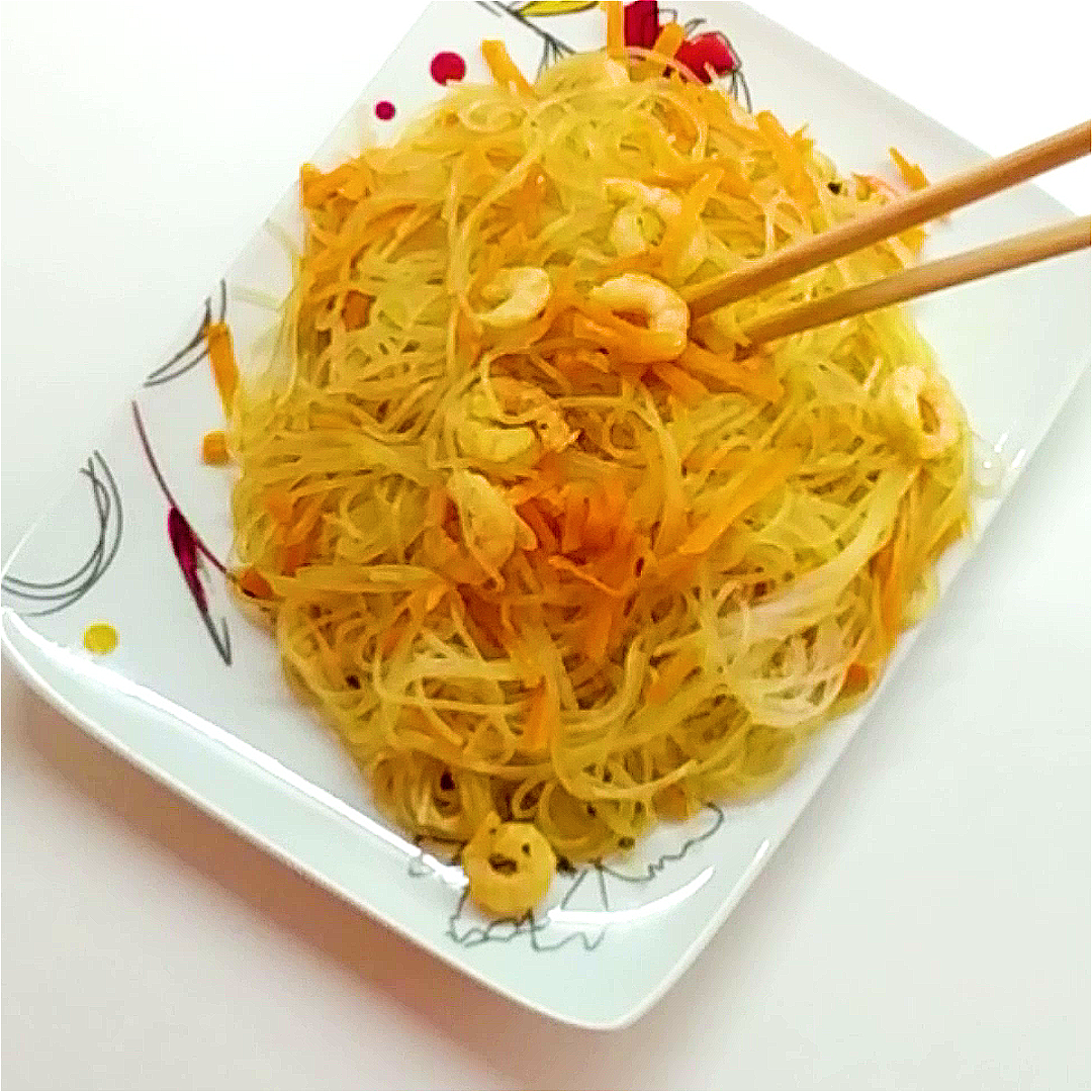 Фунчоза - 50г. Заливаем кипятком минут на 5, промываем холодной водой.