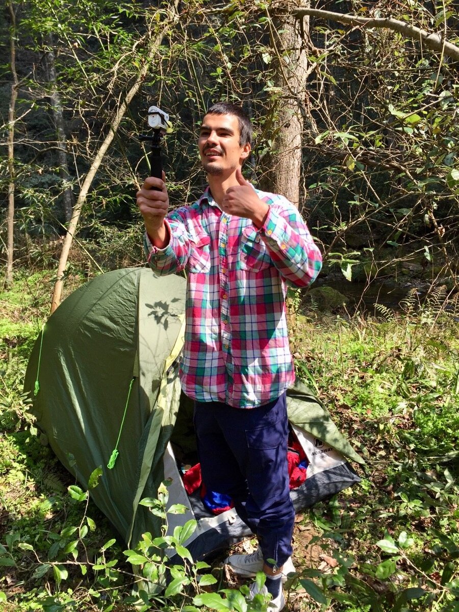 Что делать, если ты в Национальном Парке Чжанцзяцзе, он же парк "Аватара"? Как только у нас получилось пробраться в Парк в кромешной тьме, на нас напало неприятное бессилие, хотелось упасть и не вставать, очень уж сильно валило с ног. Как только мы выбрались на прямую дорогу, мы тут же ринулись "восвояси" от ужасного и страшного КПП. А как же иначе, если мы пролезли сюда бесплатно, вдруг нас заметят или уже заметили? Теперь нужно идти только на цыпочках, незаметно. Пройдя от КПП примерно 2 километра, мы начали задумываться про место под палатку, чтобы уже побыстрее лечь и уснуть. Всё время было слышно ту реку, по которой мы и пробирались сюда. Она так и идет справа от нас. Вот под ее шум, где-то посреди кусточков мы и устроили себе ночлег. Следующее утро было прекрасным. Солнышко, птички и приятное журчание ручейка, за исключением громкого китайского разговора в сопровождении хохота. Когда настало время вылезать из палатки, сворачиваться и двигаться дальше, мы заметили, что спали неда