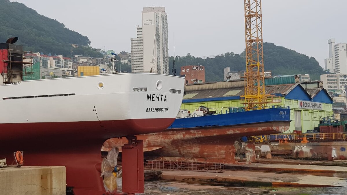 Судно «Мечта» уже несколько месяцев находится на ремонте в порту Пусана. Накануне была завершена покраска корабля, и на корме помимо названия корабля должен был появиться порт приписки – Владивосток. Но вместо этого появилось слово «ВЛАДЧВОСТОК». Скорее всего, корейцы перепутали буквы «и» и «ч», которые визуально похожи.
