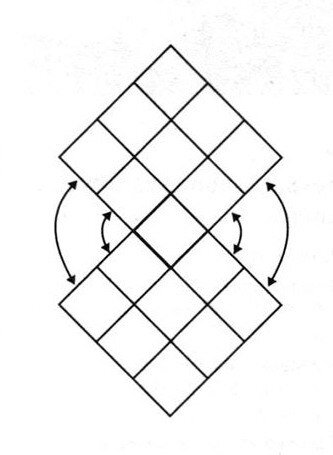 Интересно выглядят модели, детали которых собраны по диагонали. Линия плеча в данном случае получается более плавной. Для такого изделия потребуется уже большее количество мотивов, как минимум четыре. Примерная схема сборки мотивов для такого пончо дана ниже.