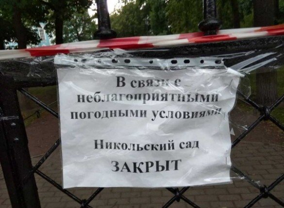Синоптики обещают дожди, грозы и сильный ветер. В Петербурге закрыли Таврический сад, сад Сан-Галли, Никольский сад, сад Галины Старовойтовой и Овсянниковский сад. Об этом «Карповке» рассказали в комитете по благоустройству. Сады закрыли из-за неблагоприятного прогноза погоды. Синоптики обещают дожди, грозы и порывы ветра до 20 м/с. В такую погоду деревья могут упасть из-за отяжелевшей от дождя листвы и сильного ветра. Садово-парковым предприятиям поручили усилить контроль за территориями скверов, садов и парков. На этой неделе ливень с градом затопил улицы Невского района и парковку магазина. Колеса машин практически полностью оказались под водой. Фото: комитет по благоустройству Петербурга