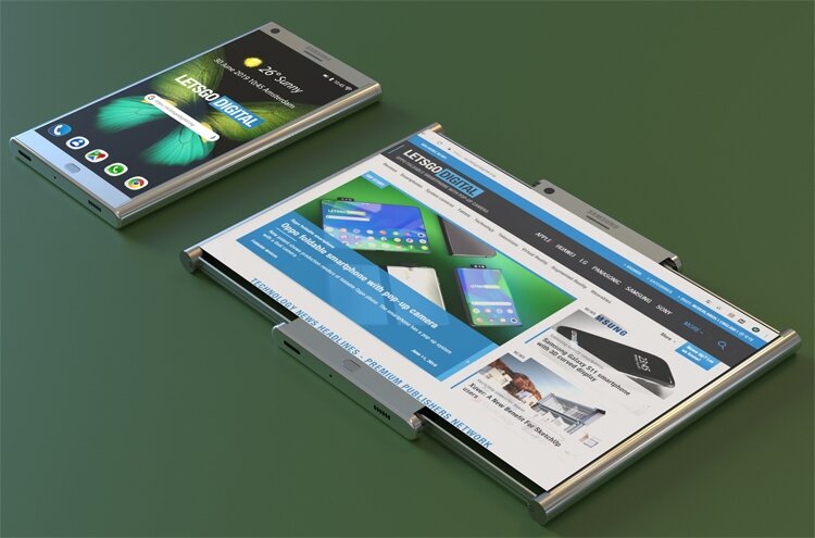 Компания Samsung предложила ещё один вариант конструкции смартфона, оснащённого большим гибким дисплеем: информацию о разработке обнародовало Управление США по патентам и торговым маркам (USPTO). Ресурс LetsGoDigital уже опубликовал качественные рендеры нового смартфона, созданные на основе патентной документации. Как можно видеть на изображениях, в сложенном виде устройство будет походить на обычный моноблочный смартфон, правда, довольно большой толщины. При этом конструкция предусматривает наличие гибкого экрана двойного растягивания: пользователь сможет вытягивать дополнительные секции панели из левой и правой частей корпуса аппарата. Таким образом, в раскрытом состоянии полезная площадь дисплея увеличится практически в три раза. За работу этой системы будет отвечать специальный механизм, скрытый в корпусе. На иллюстрациях можно видеть селфи-камеру над экраном и «домашнюю» кнопку. О планах по выпуску коммерческой версии смартфона ничего не сообщается. Друзья, помогите нам набра