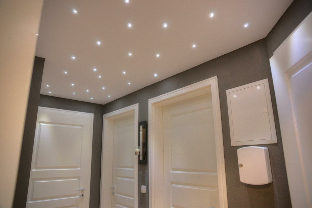 При выборе потолка в прихожей важно соотнести его с общим дизайном помещения, оценить трудоемкость отделки и, конечно, бюджет. Вариантов отделки существуют множество. Больше идей для ремонта и дизайна каждый день. Подписывайтесь на канал, чтобы не пропустить! Побелка и окрашивание Самым простым вариантом отделки является побелка. Однако ее нельзя назвать современным способом устройства потолка. Впрочем, тем, кто не желает долго задумываться над дизайном коридора, а просто хочет, чтобы у него был аккуратный вид, побелка вполне подойдет. Единственный нюанс, который следует учесть - это необходимость обязательной подготовки поверхности в виде оштукатуривания. Минусом такой отделки является отсутствие возможности создать интересный дизайн, ведь в результате вы получите обычный белый потолок. Кроме того, побелка не способна скрыть явные дефекты поверхности. Добиться более интересного дизайна своими руками можно с помощью окрашивания, ведь в этом случае вы можете придать поверхности необходи