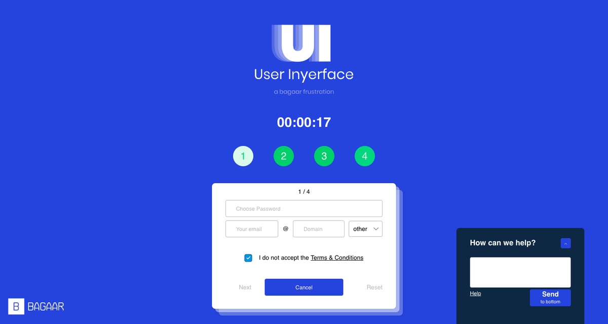 Думали, что видели по-настоящему ужасный веб-дизайн? Если вы не пробовали веб-приложение User Inyerface от Bagaar, то ошибаетесь. Фирма специально создала его, чтобы показать, насколько неудобным может получиться сайт, если поручить его создание неумелому веб-дизайнеру. Здесь есть всё: и неактивные кнопки «Далее», и сверхсложные правила создания пароля, и всплывающие окна на весь экран. Пользовательское соглашение, которое очень медленно пролистывается, и надоедливые формы CAPTCHA — всё это тоже на месте. В дополнение ко всему — ужасная цветовая схема. На сайте даже есть таймер, чтобы вы могли проверить, на сколько вас хватит. А в конце вас ждёт ссылка на страницу с вакансиями дизайнерской фирмы. Вот она — идеальная реклама: она просто не может оставить равнодушным. Перейти на сайт: https://userinyerface.com/ Подписывайтесь на наш канал, чтобы не допускать таких ошибок в дизайне!