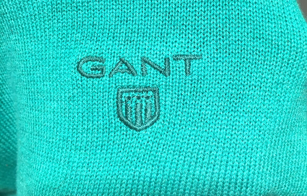 Настоящий свитер GANT стоит около 80 долларов. Если вы столкнулись с товаром по цене намного ниже, скорее всего, перед вами подделка. 1. С внутренней стороны воротника у оригинального свитера GANT есть две синие метки с логотипом и указанием используемого материала. Рядом с ними находятся две этикетки поменьше с информацией о размере и стране происхождения. К свитеру прилагается голубая картонная бирка на синем шнурке с пластиковой пластинкой, на которой выгравирован логотип GANT. На внутренних этикетках у поддельного свитера надписи расположены по-другому, а эмблема в логотипе отсутствует. 2. Вышитый логотип GANT на