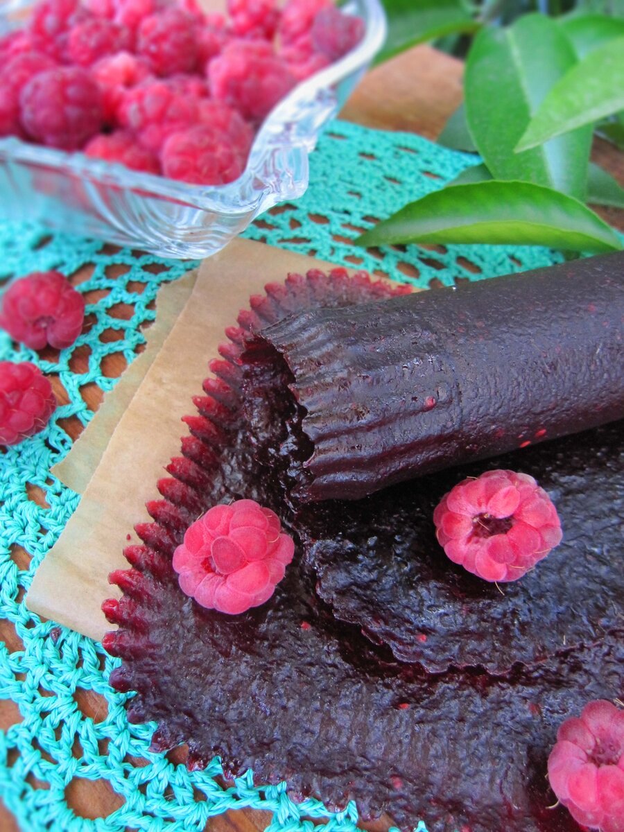 Приготовьте малиновый лаваш в домашних условиях. Состав: малина – 500 г; сахар – 2 ст. л. Приготовление: 1. Малину используйте спелую. Ягоды промойте. Обсушите. Засыпьте сахаром. Оставьте на несколько часов. Ягоды должны пустить сок. 2. Закипятите смесь на небольшом огне, постоянно помешивая. Уменьшите огонь до минимума. Варите 5 минут. 3. Остудите. Протрите через сито, чтобы удалить косточки. 4. Застелите противень пергаментом. Распределите ягодное пюре. Разровняйте лопаткой. Толщина слоя должна быть 7-8 мм. 5. Вяльте лаваш в духовке при температуре 60-70 градусов 5-8 часов. Крышка духовки должна оставаться открытой. Для хранения лаваш можно скатать в рулет и плотно запаковать в пищевую пленку. Срок годности продукта – 1 год.
