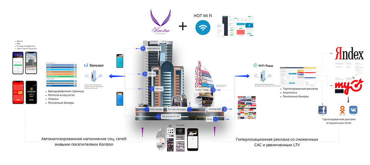 Несколько расставленных off-line пикселей с данными о клиентопотоке, возможности #Яндекс и #My_target,