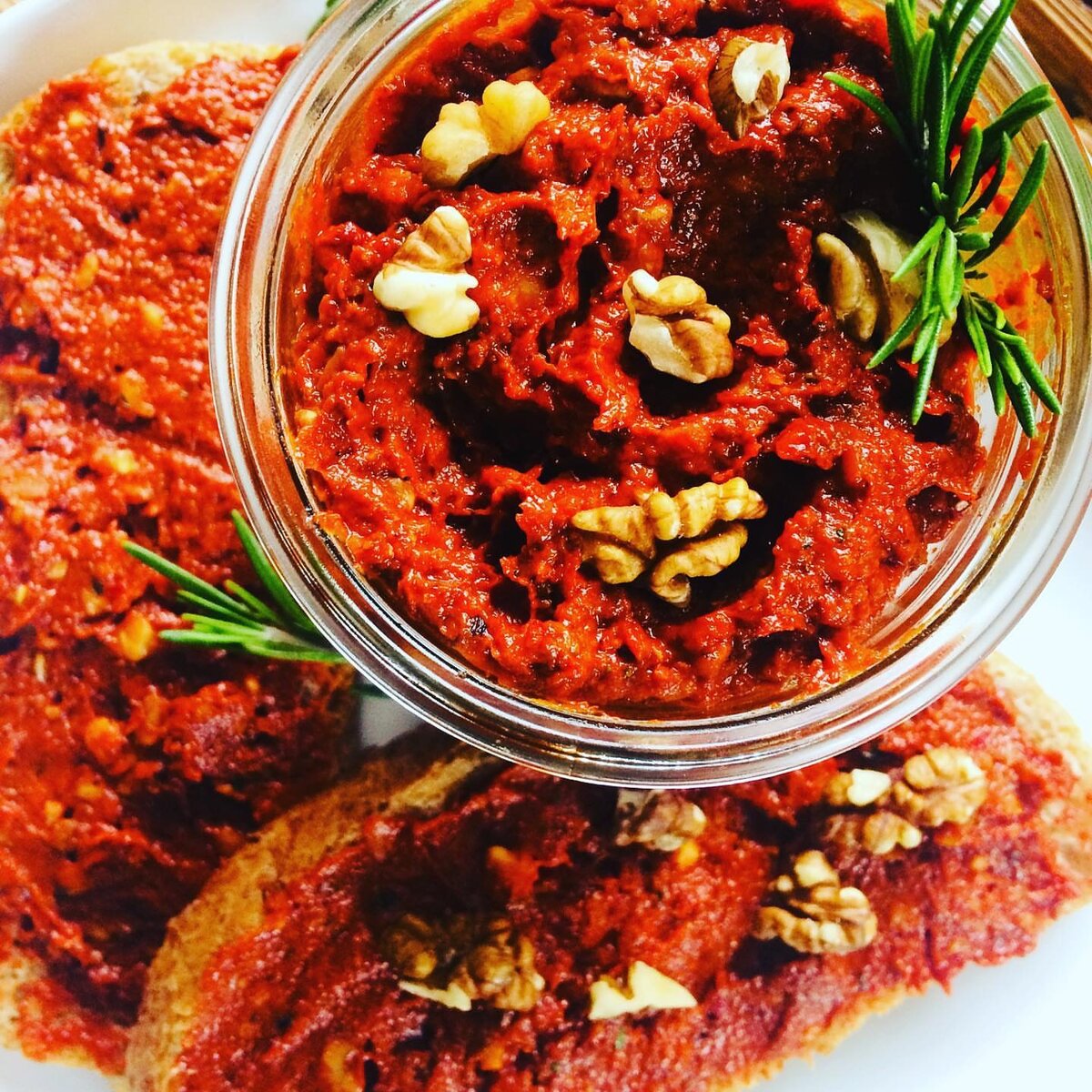 Ингредиенты: Все ингредиенты складываем в миску и хорошенько перемешивать. Грецкий орех мелко нарубить или пропустить через блендер, чеснок пропустить через пресс или натереть на терке. Количество специй, чеснока, гранатовый соус и лимонный сок регулируйте сами. Определенного стандарта нет. Храните в стеклянной банке или коробке, с плотно закрывающейся крышкой. Если аджука постоит пару дней, то будет ещё вкуснее. Сложного в приготовлении нет ничего, если в вашей местности продаётся перечная паста. Аджука частый гость на турецких завтраках. Если вам удавалось её попробовать в Турции, то, скорее всего, она была безумно острой. Турки любят все очень острое, соленое и кислое. Попробуйте приготовить аджуку по написанному мною рецепту, уверена, что не пожалеете. Приятного аппетита! Afiyet olsun!
