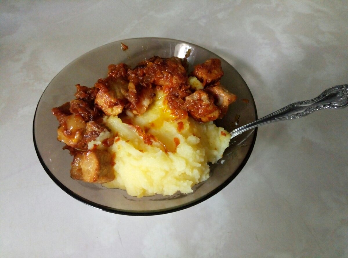 Привет друзья. Лето. Жара. Все это не очень располагает к каким то жарким приготовлениям пищи. Хочется в большей степени сделать салатик, или просто попить холодного чайку. Но на таком рационе далеко не протянешь. Особенно я. Поэтому приходится все таки заморачиваться. Вот и сегодня я заморочился на вот такую вкусняшку. Хотя чем заморочился? Все делается элементарно просто. Взял свининку-корейку, с несколькими ребрышками. Нарезал кусочками. Не мелкими, но помельче чем на шашлычок. И начал жарить. Вот так: Вообще, зрелище жарящегося мяса, просто завораживает. Не знаю почему. Когда оно подрумянилось, высыпал натертую морковь и порезанный лучок. Вот так: И все, дальше остается только ждать. А что бы ждать было не скучно, помешивал мяско, и варил картошечку. В итоге, все приготовилось практически одновременно. Картошечку перетолок в пюрешку. А дальше получилось то, что изображено на первом фото. Ну а по вкусу, думаю догадываетесь. Очень вкусно. Все готовилось приблизительно минут 40. С