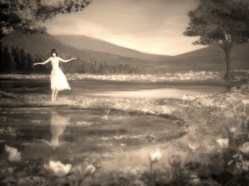 А вот в воздухе точно экран вырос. Прозрачный - я видела Ноя за ним - но весьма четкий. А потом на экране вдруг появилась картинка. Девушка в белом платье, красивая. Она шла по воде, чуть растерянная, милая и в то же время решительная. Моя.