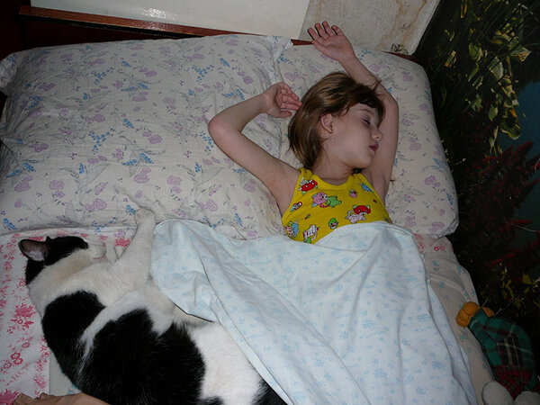 Мне было 6 лет, когда мы переехали в новую квартиру. Яшка тогда был ещё совсем юным котом, смелым, уличным любителем прогулок. Наши с ним взаимоотношения, если можно так это назвать, не складывались. Я – маленький ребёнок, которому хочется поиграться с котиком. А ему хотелось поесть и сбежать на улицу. Переезд дался мне очень тяжело. Это было зимой. Я жутко боялась нового места жительства, особенно жутко мне было оставаться одной. Однажды я заболела, мама вынуждена была оставить меня дома, чтобы сходить в аптеку. И вот мы с Яшкой остались одни. Я держалась некоторое время, но вскоре новая обстановка стала пугать меня. Сейчас, конечно, я всё это вспоминаю с улыбкой, но тогда мне было действительно очень страшно. И вот я, болеющий ребёнок с температурой, начинаю истерически одеваться, чтобы бежать за мамой в аптеку. Всё это время, мирно спящий кот, вдруг, вскочил и подбежал ко мне. Стал тереться о мои ноги и всячески мешать обуваться. Ни с того ни с сего, всегда вырывающийся из моих