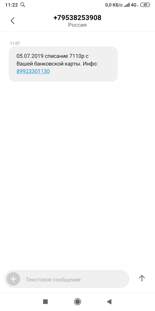 Только что. Свеженькое. Пришло SMS с номера +79538253908. Содержание смс списание денежных средств с карты. Предлагают перезвонить на номер +79923301130. Мошенники.
