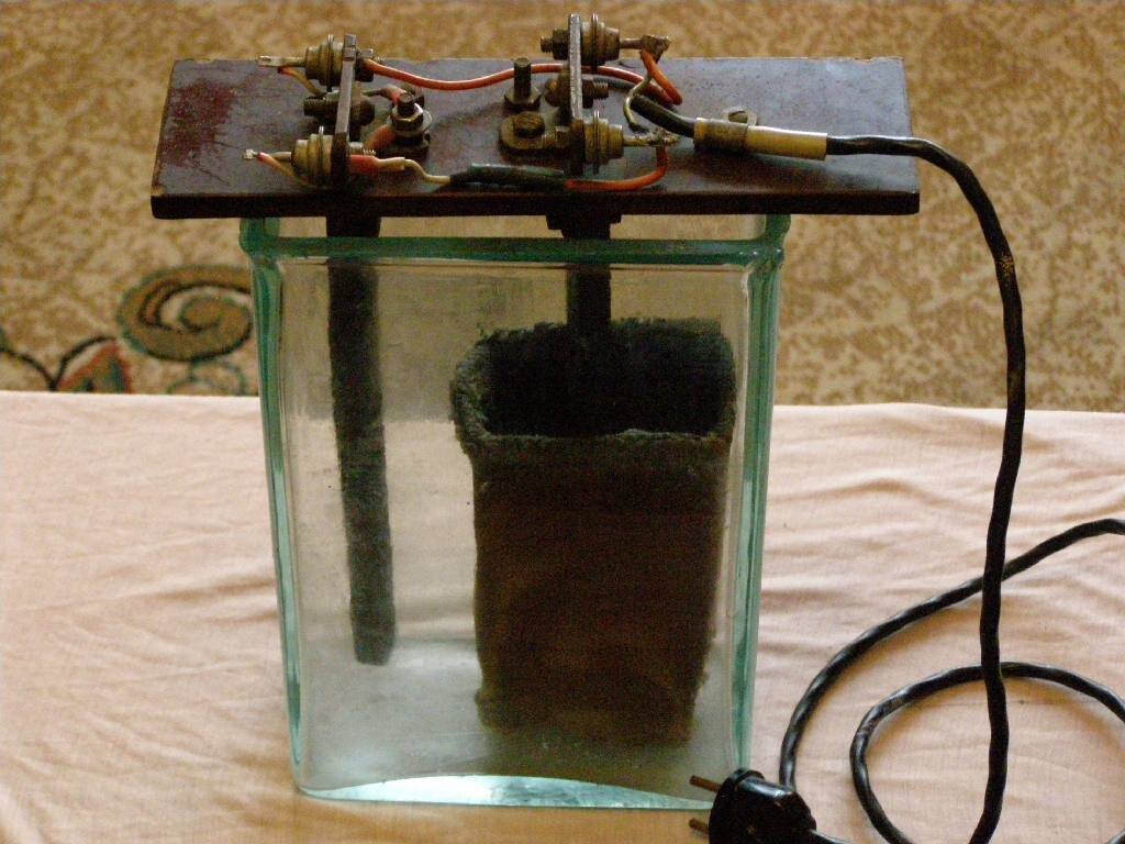 Решил показать эту картинку, после того услышал в магазине вопрос, управляется ли активатор воды с телефона... А ведь брезентовый чехол и диодный мост были совсем недавно, и ни кого не удивляли. А телефон тогда был дисковым.... Немного истории: Активацию воды придумали наши ученые в 1972 году, потом в СССР ее многие делали дома кустарным способом. Первыми были ташкентские ученые. Они доказали, что щелочная ионизированная (живая) вода улучшает обмен веществ, а кислотная (мертвая), очень даже неплохой антисептик. Этим ученым даже выдали авторское свидетельство на изобретение, но поставили на нем гриф «секретно». Из-за этого широкая медицина, я уже не говорю о широкой публике, так ничего и не узнала. Тем не менее, слухи пошли. Как и многие новости в Советском Союзе, люди тихим голосом рассказывали чудо-воде на кухне или в курилке. Чего греха таить, и у меня где-то в кладовке лежит такой ионизатор, почти как на картинке. Его делал еще мой папа в 70-х годах. Собрать его было не так сложн