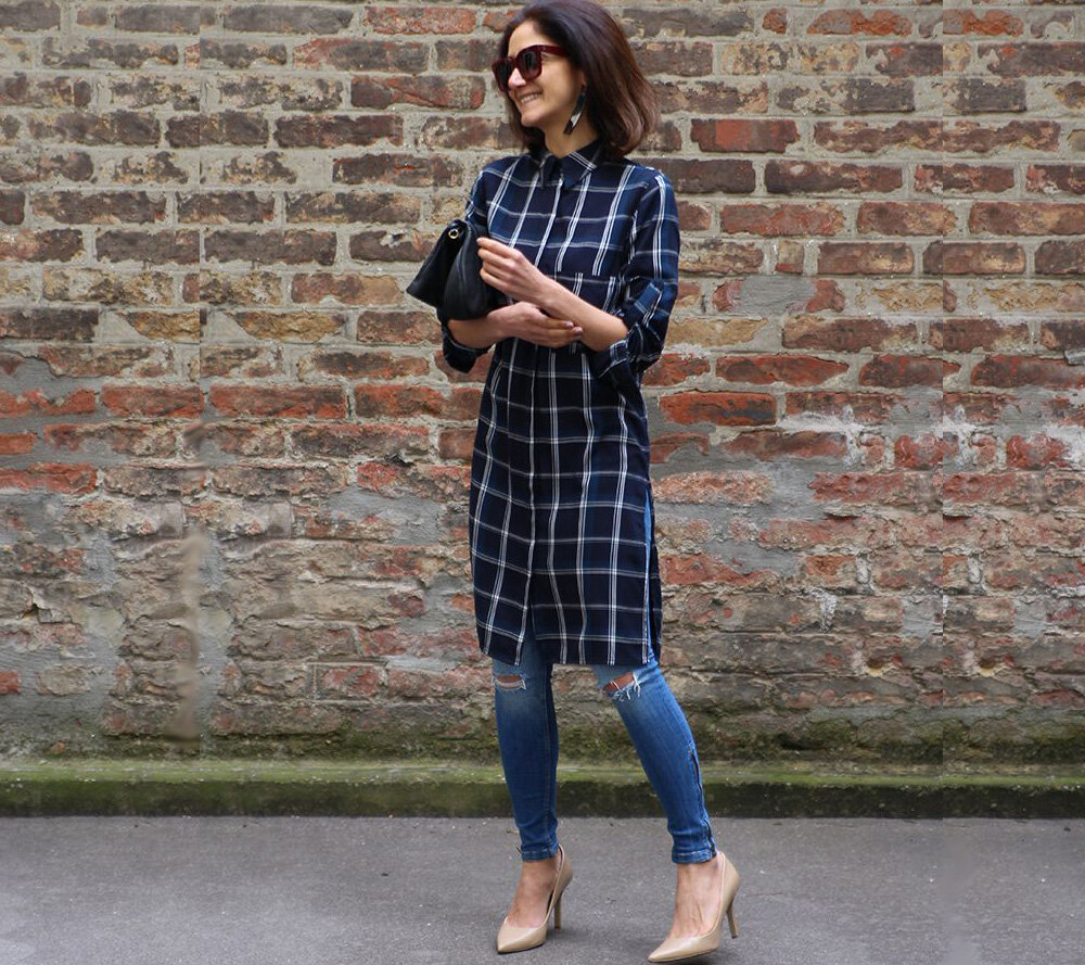 Комплект, состоящий из брюк и платья, нельзя назвать новинкой. Такое сочетание было весьма популярно в 90-е, и сейчас, спустя почти 30 лет, оно снова вернулось на подиумы. Нужно сказать, что сочетание это неоднозначное. Далеко не каждое платье подойдет для ношения с брюками. Кроме того, при подборе элементов ансамбля нужно учитывать особенности своего телосложения. С платьем-рубашкой Одним из наиболее удачных вариантов является сочетание платья-рубашки с брюками или джинсами. В идеале нужно использовать узкие брюки, но если ноги полноваты, то лучше отдать предпочтение моделям прямого покроя. Платье рубашка может иметь длину до колена. Высокие модницы могут выбрать более длинный вариант – почти до щиколоток. Брюки обязательно должны иметь высокую посадку. Носят платье, не застегивая пуговицы от линии талии до низа. Талию желательно подчеркнуть. Если силуэт фигуры напоминает песочные часы, то можно выбрать приталенный вариант платья-рубашки. Если же талия далека от идеала, то лучше подоб