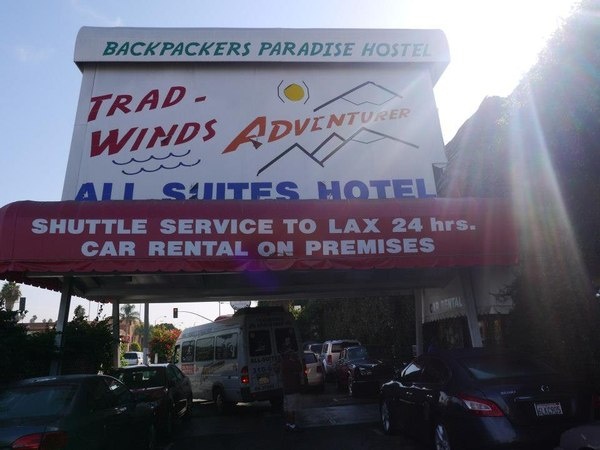 Так как ориентироваться в Лос-Анджелесе и прилегающих к нему городах довольно тяжело, мы решили не запариваться и попросили одного американского друга помочь снять хостел. Наши приоритеты были предельно ясны: рядом с транспортной развязкой, недалеко от LA, недорого, прилично. Погуглив, друг посоветовал небольшой хостел "Tradewinds Adventurer Hostel". С виду и внутри все было достаточно мило, атмосфера интернешнл, бассейн, бар, столики и куча молодых туристов с разных концов Америки и мира.