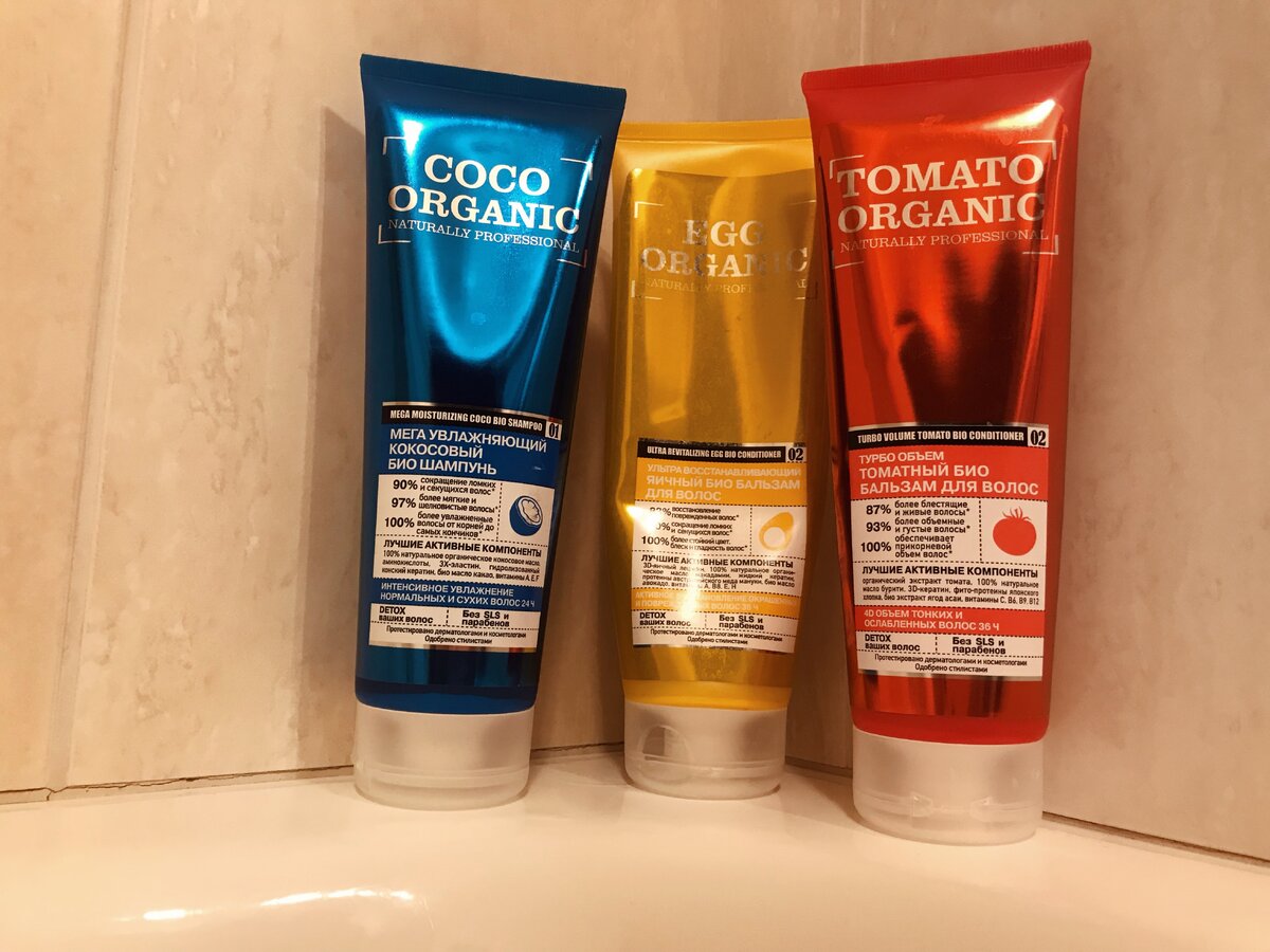 Красивые волосы способны творить чудеса даже если вы вышли из дома в растянутой футболке. Поэтому каждая девушка находится в вечном поиске идеальных средств для ухода за волосами. Но потом оказывается, что какие-то из них дают минимальный эффект, а большинство и вовсе способны нанести вред. Ценовая политика в этой сфере не имеет границ, можно приобрести шампунь как до 100 рублей, так и за несколько тысяч. На мой взгляд, главная задача любого средства – не навредить, а потом уже все остальное. Так вот, когда захотелось попробовать что-то новенькое, я отправилась в Organic Shop – магазин органической и натуральной косметики. По совету продавца, я выбрала для себя три средства из профессиональной линии, о которых и пойдет речь в этой статье. 1. Мега увлажняющий кокосовый био - шампунь (250 мл – 172 руб.) – на фото слева В составе натуральное органическое масло, аминокислоты, 3X-эластин, гидролизованный конский кератин, био - масло какао, витамины A, E, F. Производителем заявляется, что ша