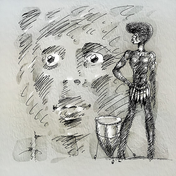 Опять стучат... Кто там? Ваш барабан, сударь. Там - Там! Мой барабан! Сразу после завтрака... В сердце его, стучит Африка! Стройтесь бездельники; эмоции, мысли, стройтесь в ритмическом смысле. Эй, барабан! Пыль на дороге... Эй, барабан! Война на пороге... Эй, барабан! Тут целая банда! Эй, барабан! Поднимай команду! Мой барабан! Вам ли не знать. Мой барабан! Не устанет стучать! В сердце его, пульсирует Африка! Мой барабан, ритмичная фабрика! Восставший из пепла завод! Воскресший из праха народ! Шагайте рядами, вздымайтесь волнами! Лейтесь под знамя, потоками полными! Стучи барабан, бей и стучи! Победный, Там-Там, раздувай кумачи! Эй, барабан! Жизни, - сюита! Эй, барабан! Держи ритм!