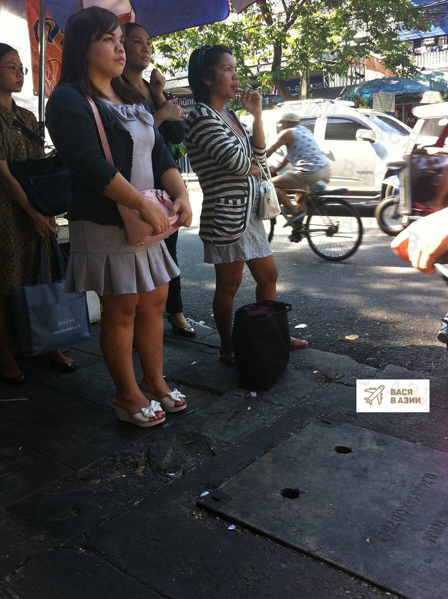Стою я как-то утром в Бангкоке на остановке. И, кроме меня, стоят, в ожидании автобуса, четыре тайки. Точнее - на первый взгляд - четыре тайки, а если немного присмотреться - три тайки и один "ледибой". И такие у них у всех целенаправленные взгляды, словно это не тайки ждут автобуса, а комсомолки смотрят в "светлое будущее"... ) Да вот, смотрите сами: Смотрю на них и думаю - ведь перепутать-то на самом деле невозможно. Если только быть в ОЧЕНЬ не трезвом состоянии. Но тогда и обезьяну можно принять за человека. Что же так выдает в Таиланде так называемых "ледибоев" ? Во-первых, "ледибои" (или "катои", как еще их называют "за глаза"), а по-тайски просто "กะเทย" (что буквально переводится, как "двуполый"), всегда ЗНАЧИТЕЛЬНО ВЫШЕ "натуральных" таек - это первое, что замечаешь. Более того, как ни странно, но "ледибои" выше не только таек, но и тайцев! Скорее всего, дело в том, что они неизменно носят обувь на высоченных каблуках. Во-вторых, бросается в глаза КУКОЛЬНОСТЬ ЛИЦА! И это не уди