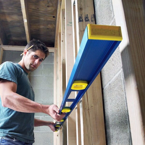 После очистки стены смонтировали каркас из металлического профиля: располагать вертикальные направляющие нужно в одной плоскости — добиться этого позволит проверка с помощью уровня. Шаг между элементами каркаса сделали 60 см — это половина ширины листа. Сам гипсокартон закрепили к основанию саморезами длиной 25-35 мм. Кстати, полости между направляющими можно использовать для дополнительного утепления.