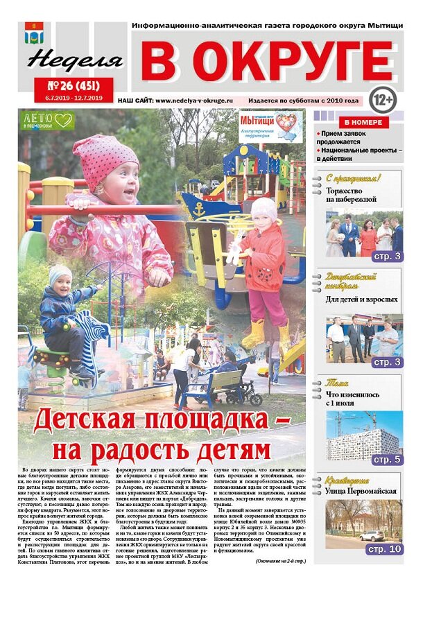 Новый выпуск газеты «Неделя в округе» №26 выходит в преддверии Дня семьи, любви и верности, и мы поздравляем всех мытищинцев с наступающим праздником, а также рассказываем о том, какие мероприятия по этому случаю прошли на набережной реки Яузы.