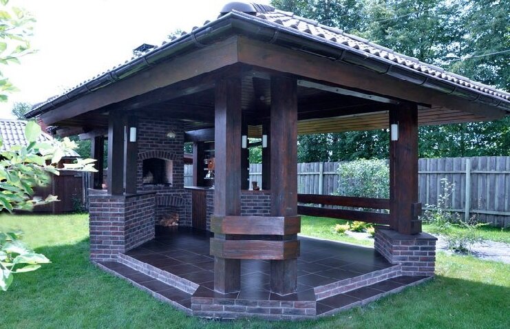 Название стиля шале пришло (спустилось), к нам из Альпийских заснеженных гор. Небольшие помещения, обустроенные как место, где можно скрыться от непогоды, обогреться, приготовить себе пищу и жить некоторое время в приемлемых условиях, назывались в Швейцарии хижиной пастуха. Помещение должно быть прочным, долговечным, максимально приближенным к практичному сельскому быту. Отсюда и идут требования и условия к материалу, из которого строились эти хижины. Материал должен быть природным и простым. Возведение Задумав строить беседку в стиле шале, хорошо взвесьте ваши возможности, и финансовые то же, наличие свободного времени, терпения и умения как строителя. Целесообразность постройки шале беседки должна быть вами самим оправдана. В соответствии со стилем, беседка строится из утяжеляющих конструкцию материалов, природного камня или его имитация, дерево брус размером 150×150 мм или 200×200 мм. Под такой капитальной шале беседкой должен быть соответствующий фундамент. Фундамент изготавливаетс