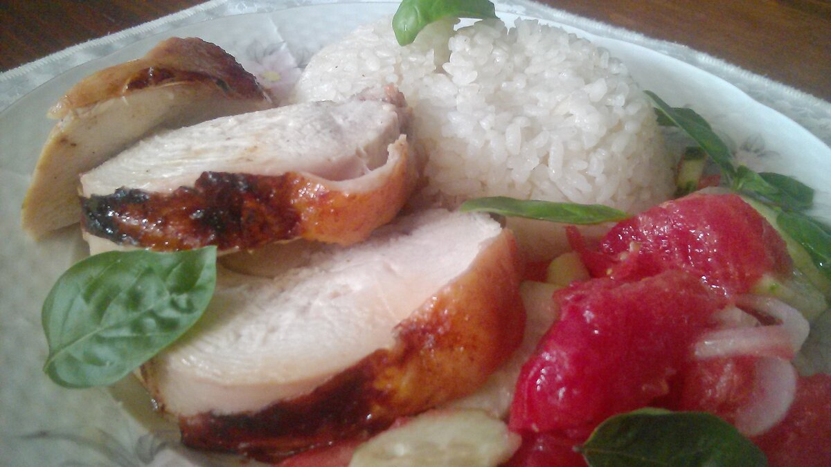 Курицу на ужин моя семья готова есть хоть каждый вечер. Только чтобы корочка была хрустящая, а мясо сочное... Сегодня приготовим сочную куриную грудку. Быстро и вкусно. Для приготовления нам потребуется: Куриная грудка - 1 шт. Чеснок - 4 зубка Соль - 1 ч.л. (по вкусу) Мед жидкий - 2 ст.л. Перец белый молотый - 0,5 ч.л. Растительное масло 2 ст.л. Вода - 1/2 ст. Начнем готовить. Разогреваем духовку на максимум, у меня 270 градусов. Измельчаем чеснок. Я режу пластинками. Складываем чеснок в форму для запекания. Добавляем соль. Туда же высыпаем перец молотый, у меня белый. Добавляем мед и растительное масло. Все хорошо перемешиваем. Хорошо обваливаем нашу куриную грудку в ароматной смеси. Чеснок я обычно оставляю снизу, т.к. он горит, если его оставить на грудке сверху. Вливаем 1/2 ст. воды. Ставим запекаться в разогретую духовку на 20 минут при температуре 270 градусов. Как только образуется корочка, а наша курочка запечатается, уменьшаем нагрев до 200 градусов. Запекаем еще 15-20 минут.