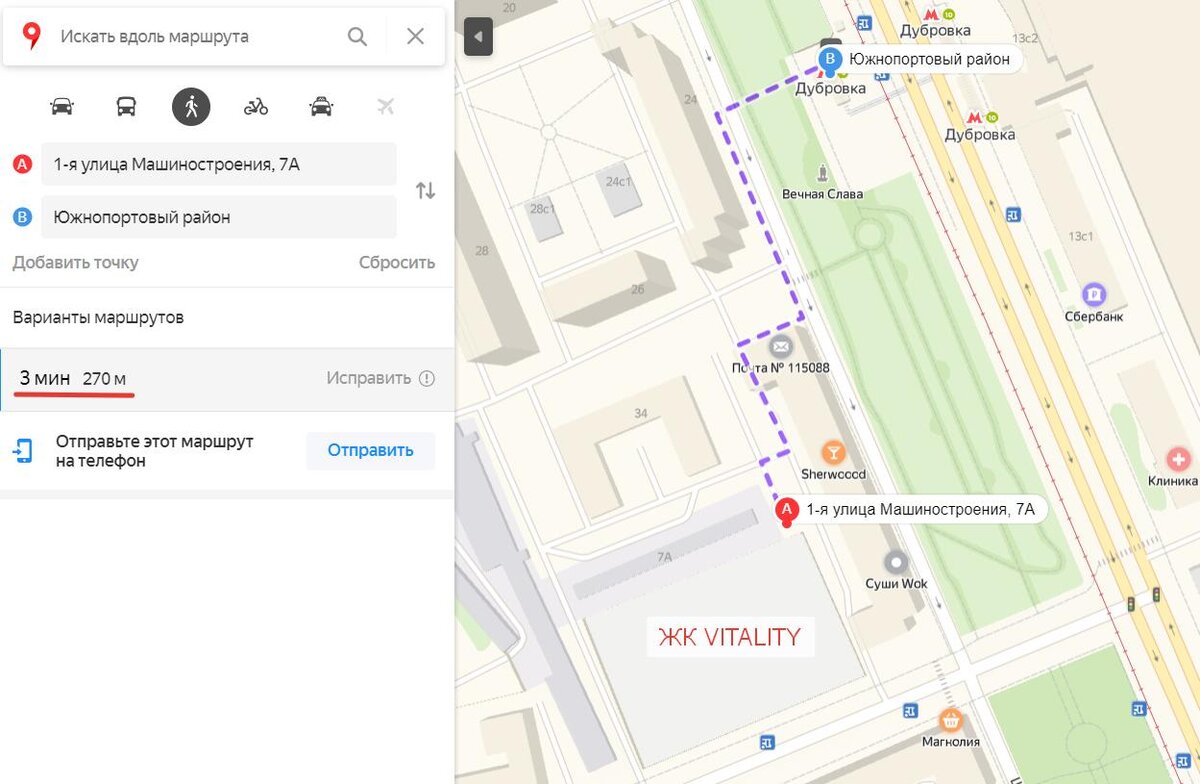 Симпатичный (глядя на рендеры) ЖК начали строить в перспективной локации. Вот здесь Расположение. ЮВАО. Южнопортовый район, 1-я улица Машиностроения, д. 7 к.1 (дом будет единый, в 2-х корпусах сквозная нумерация) В трех минутах ходьбы находится станции метро Дубровка, одноименная станция МЦК — в пяти минутах Автомобилистам очень быстрый выезд на ТТК В центр можно попасть по Волгоградскому проспекту, улице Симоновский Вал и Крутицкой набережной. Садовое кольцо находится в 4-х километрах Выбираете новостройку прямо сейчас (или в ближайшие 6 месяцев)? Просто заходите на Яндекс.Новостройки, легко выбирайте там нужную себе квартиру (там вообще все ЖК и актуальные цены). И сразу там же звоните застройщику, что бы узнать все условия (скидки, рассрочки, ипотека) под вашу ситуацию Что рядом. В непосредственной близости от ЖК Vitality (Виталити) находятся красивый сталинский дом, панельная застройка и хостел Хостел представляет собой два 7-ми этажных корпуса и по вечерам генерирует большую