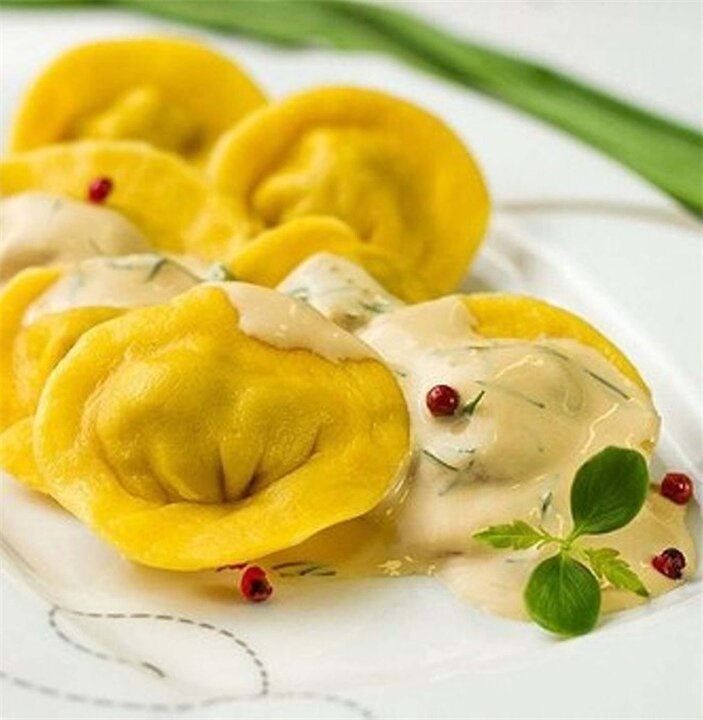Домашние пельмени с фаршем, сыром и сметанным соусом 1. Высыпать муку на стол горкой и сделать в ней небольшое углубление. 2. Аккуратно влить туда яйца и смешанный морковный сок с 1 ч.л. соли и растительное масло. 3. Перемешать, постепенно собирая муку со всех сторон, до тех пор, пока не получится крутое тесто. 4. Фарш смешать с натертым сыром и добавить соли и перца, перемешать. 5. Выложить небольшое количество фарша на тестяную основу и сформировать пельмень. 6. Сметану и соевый соус тщательно смешать и подавать к пельменям.