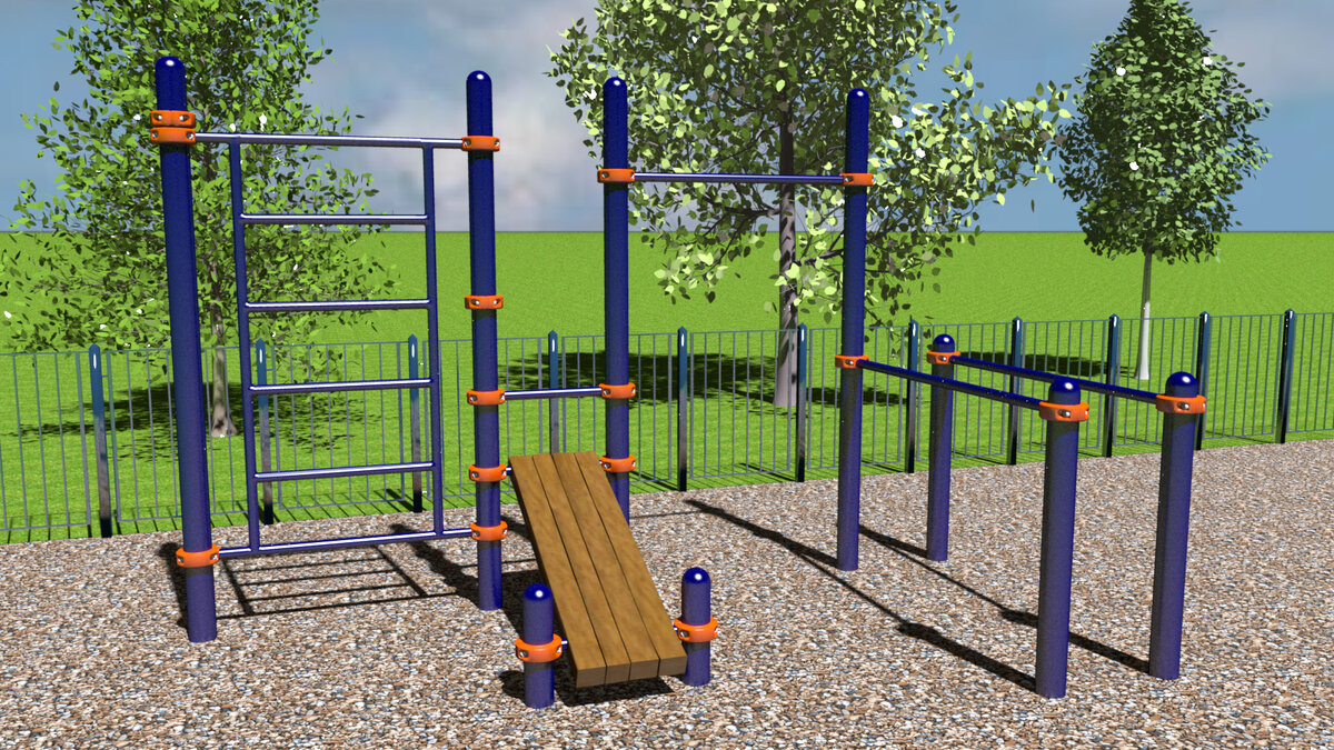 Площадки для занятий уличным спортом рассчитаны на взрослых людей, подростков и малолетних детей. Стандартный комплекс включает: