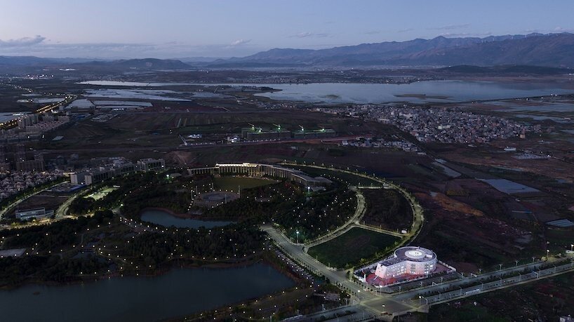 В китайской провинции Юньнань появился детский сад в форме леденца. Спроектированный DIKA Kindergarten Design Center «Cад воображаемого леденца» был построен за 2 года и открыт несколько месяцев назад. Огромное яркое здание площадью 10 684 кв.м. оживило невыразительную местность. Архитекторы создали круглое здание-леденец, пересеченное прямоугольным крылом-палочкой. В центре основной его части, в атриуме, расположена игровая площадка. Классы на всех 4 этажах получают теплое естественное освещение. Фасад оформлен в пастельных и розовых тонах. Эта цветовая гамма вызывает у детей и взрослых приятные ассоциации с конфетами и живописным закатом. Розовый градиент смягчает холод бетонной отделки здания и стимулирует воображение. Круглые, квадратные и прямоугольные окна создают ощущение динамики при взгляде на здание, а свет, проникающий в них, заполняет необычными бликами все помещения детского сада. По всему периметру здание окружено игровой площадкой с беговой дорожкой и несколькими секци