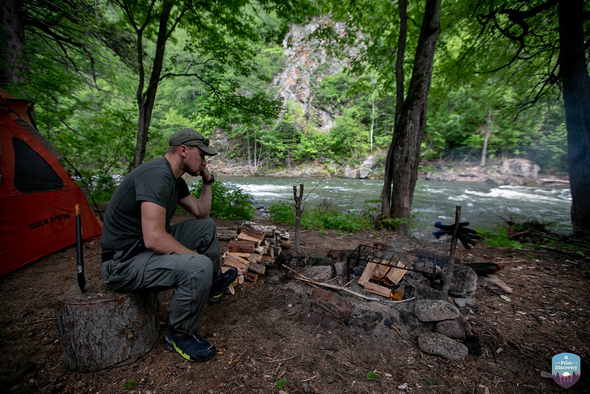 Раннее утро четвертого дня экспедиции началось с быстрого завтрака и сбора вещей - пора было ехать дальше, на север. Не без труда распихали свои пожитки по двум автомобилям, прибрались на кордоне, собрали мусор в мешки, погрузили на крышу. Дальше нас ждала долгая дорога до знаменитого порога реки Кема - Секунджа, а после до очередного места ночевки. Покидать теплый и уютный кордон всегда горестно, да и где ещё можно обзавестись быстрым WiFi. Дальше связи не будет совсем. Дорога до порога Секунджа в основном грунтовая (до Артемово асфальт), можно смело ехать 60-90 км/ч. Я впервые был на Кеме, впервые видел её своими глазами. Впервые видел такой бурный порог. Оказывается, в этом месте даже сплавляются. Я бы не смог - за фототехнику страшно (без неё какой смысл сплавляться?). Судя по поляне, место это популярное - вытоптаны две большие поляны, куча мусора, вдоль порога проложена добротная тропа. Нагулявшись и нафотографировавшись мы выдвинулись дальше. Время подходило к обеду, значит по