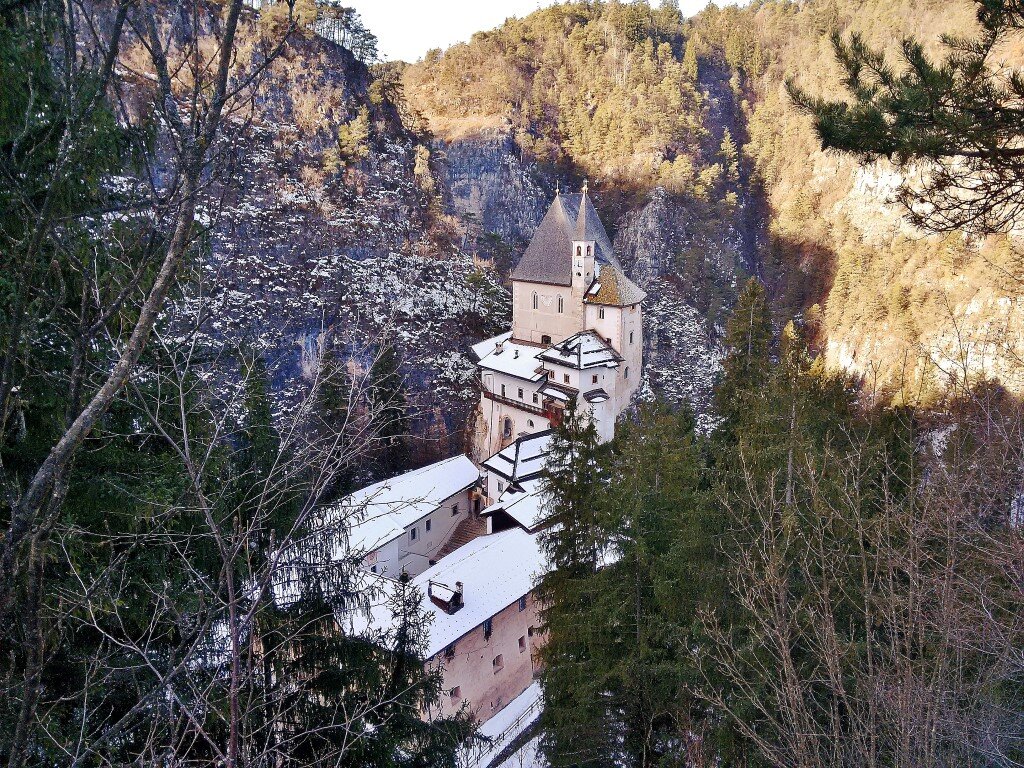 Где-то в глубине итальянских Альп мы заночевали накануне посреди безумно живописной местности в прикольном отеле и на следующий день планировали двигаться в Австрию. И совершенно случайно, лениво лазая по Google Earth, я наткнулся на некий неизвестный мне монастырь километрах в десяти от места нашего ночлега. Место привлекло мое внимание потенциально красивой природой, там даже на карте было видно могучее ущелье. Для бешеной собаки 10 километров не крюк? Тогда в путь!