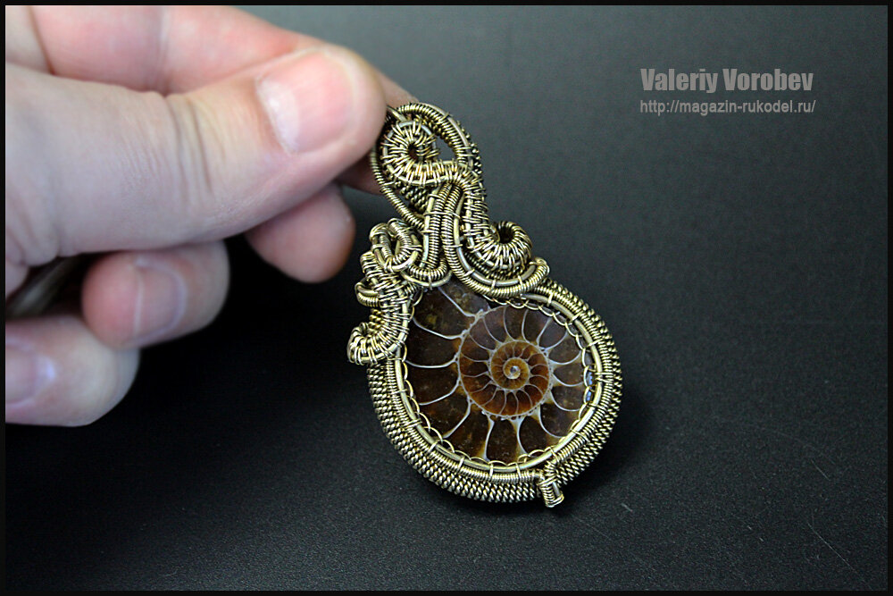 Кулон из латунной проволоки и аммонита своими руками.