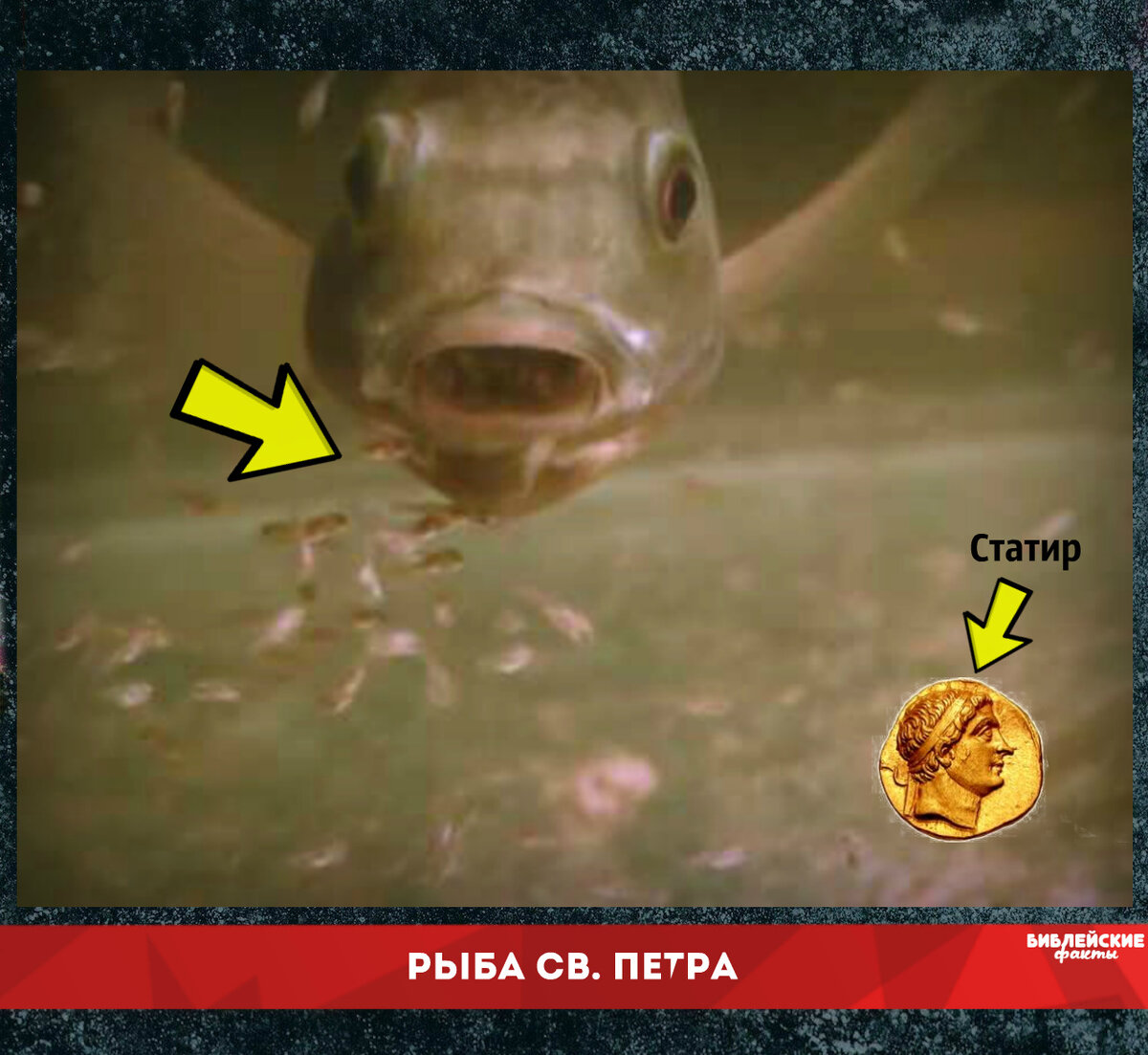 В Евангелии от Матфея есть след. история. К Петру, вернувшемуся в Капернаум, подходят собиратели дидрахм и просят его дать им монету. Апостол соглашается, Иисус же на просьбу Петра дать монету, говорит ученику:" Пойди к морю и вылови рыбу, а во рту у этой рыбы будет монета статир". Так и происходит.