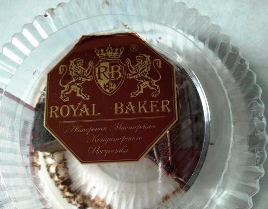 Торты мы покупаем крайне редко, я даже не знаю на сегодняшний день какой у меня любимый, но точно знала, что Прага не входит в их число. Вот даже в детстве я была равнодушна к этому торту, не понимала за что его все так обожали и гонялись за ним. И конечно, если бы я пошла покупать торт, а нужен он был на десерт, т. к. ожидались гости, то купила бы какой-нибудь другой, но ходил в магазин муж и принес его - "Роял-Прага" от Royal Baker. то был небольшой тортик, всего 600гр, упакован традиционно в пластиковую коробку с фирменной этикеткой шоколадного цвета на крышке. Я так понимаю, что это герб мастерской кондитеров Royal Baker. ...утверждают что они №1 в мире, т. к. имеют более 15 международных наград - смелое утверждение, однако!)) Поинтересуемся составом, я все еще скептически настроена по отношению к этому торт, но, что купили, то и будем есть... К моему удивлению, состав оказался вполне нормальным, упоминаются здесь, конечно же, растительные масла в приготовлении кремового покрытия