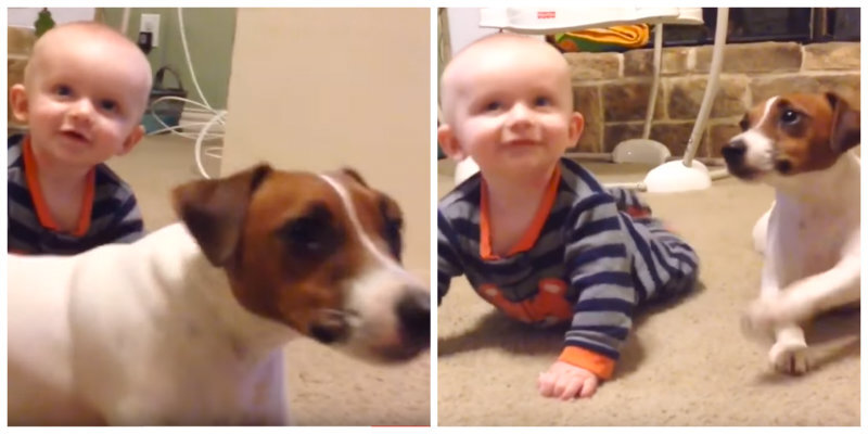 Сложно представить, как собаки могут учить детей ползать. Но родители успели заснять это на видео, поэтому мучить свое воображение не придется. Просто включите ролики и убедитесь сами. Неизвестно, дрессировали ли взрослые своих питомцев специально. Но судя по поведению собак, они проявляют инициативу сами, и рады помочь ребенку освоить науку «ползанья». Собаки и дети — друзья навеки Есть множество видеороликов, которые показывают, что собаки и дети могут быть лучшими друзьями. Но в роли учителей четвероногих друзей сложно представить. Этому мальчику 5 месяцев и у него пока проблемы с ползанием. Пес заметил это и решил помочь малышу. Джек-рассел-терьер — охотничья порода, который знает как выследить дичь, незаметно подползти к ней или влезть в нору. Он превосходно ползает и наглядно демонстрирует это ребенку. Затем пес останавливается и оглядывается на ученика. Будто проверяет, усвоил ли малыш урок, готов ли он продемонстрировать свои знания в «ползание». Эта собака не из ленивых. Он р