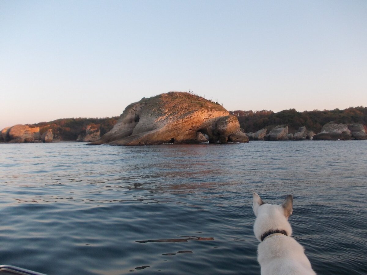 Мы позавтракали на яхте, собрались. Умка остается на вахте, охраняет лодку от котов и бакланов. Естественно, крайне недовольна, звонко и обиженно лаяла вслед.