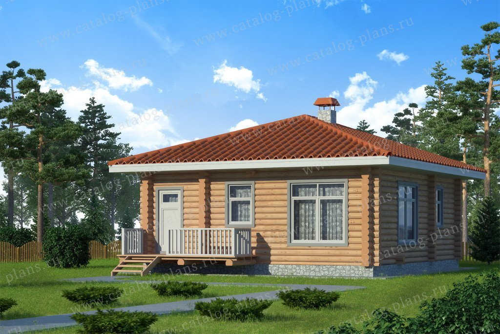 Если вы ищете проект недорогого дома для всей семьи, то нам есть что вам предложить. Данный проект деревянного одноэтажного дома представляет собой отличное сочетание цены и качества. В таком доме сможет в течение целого года проживать небольшая семья из 3-4 человек. Обратите внимание на грамотное расположение комнат внутри дома. Благодаря рациональному использованию пространства, на небольшой площади в 60 квадратных метров разместились все необходимые помещения для жизни и отдыха небольшой семьи. Небольшие размеры дома 8х8 метров, позволяют уместить его даже на достаточно узком участке. В качестве фундамента дома был выбран ленточный железобетон, перекрытия – по деревянным балкам. Чердачная крыша дома покрыта металлочерепицей, а наружные деревянные стены обработаны тонировкой. В дом можно попасть только через главное крыльцо. В центре дома находится печка, труба дымохода выходит через крышу. Большую часть дома занимает объединенное двухсветное пространство гостиной и кухни. Здесь вы н