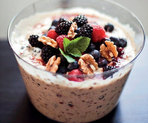ИНГРЕДИЕНТЫ Молоко 2 стакана Овсяная крупа 2 стакана Йогурт 3 столовые ложки Бананы 1 штука Яблоко 1 штука Сушеная брусника 50 г Голубика 50 г Изюм 30 г Малина 50 г Ежевика 50 г Миндаль 50 г Грецкие орехи 50 г Мята 5 г Мед 6 столовых ложек ИНСТРУКЦИЯ ПРИГОТОВЛЕНИЯ 1. Овсяные хлопья или овсянку залить молоком, добавить пару ложек йогурта, тертый свежий банан и яблоко, изюм, бруснику и оставить в холодильнике на час. 2. Подавать, украсив мятой и полив медом. Еще больше рецептов на сайте eda.ru Подписывайтесь на наш инстаграм @edaruofficial — каждый день вкусные рецепты! Заходите чаще на наш канал! Каждый день новые и актуальные материалы и рецепты — не пропустите все самое интересное! Подпишитесь на канал в правом верхнем углу.