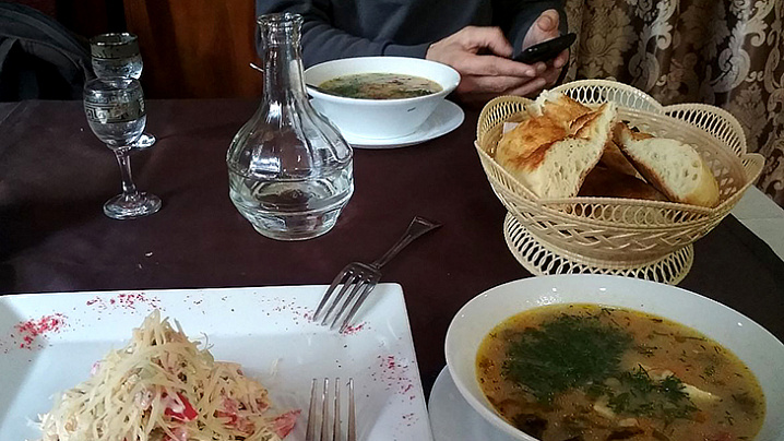 Все супы (например, пити, дюшбара, хаш) стоят не дороже 300 рублей. Есть наваристые супы за 200.