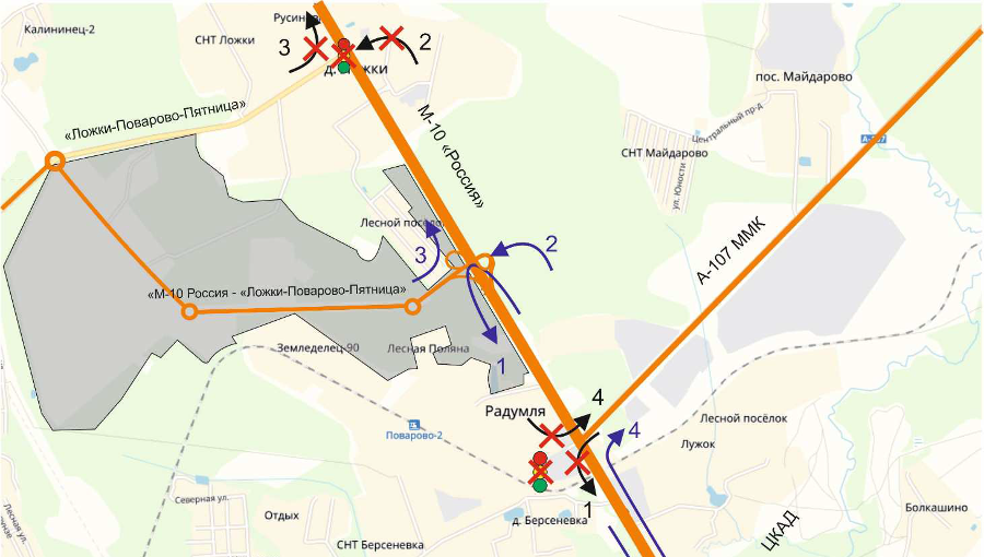 До 2022 года на участке Ленинградского шоссе в районе Солнечногорска, от микрорайона ДЭУ-119 до деревни Ложки, планируется строительство новой транспортной развязки, сообщает министерство транспорта и дорожной инфраструктуры Московской области. «Транспортная развязка соединит М-10 «Россия» с построенной в 2018 году четырехполосной дорогой «М-10 «Россия» – «Ложки-Поварово-Пятница», которая обеспечила беспрепятственный доступ к индустриальному парку «Есипово» и автомобильному завод «Мерседес». Новая развязка ликвидирует проблемный участок, увеличив пропускную способность на 30-40%», – сообщил министр транспорта и дорожной инфраструктуры Московской области Алексей Гержик. После введения развязки в эксплуатацию исчезнет надобность в светофорах, регулирующих движение на перекрестке М-10 с прилегающей дорогой в сторону Поварово. На данный момент уже заключен контракт с подрядной организацией – ОАО «МИСК». Уточняется, что общая протяженность новой четырехполосной дороги со съездами составит