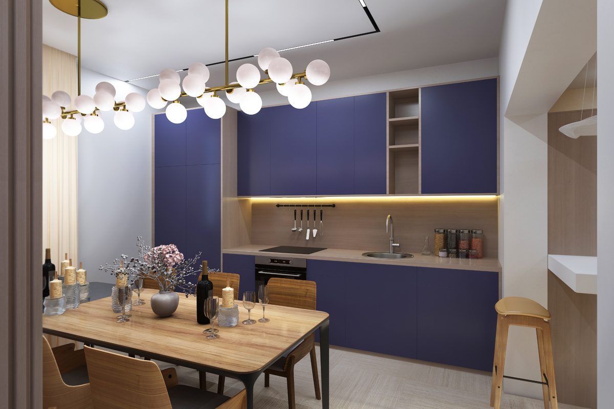 🔵 Концепция “Жилая кухня”. Заключается в том, что кухня воспринимается местом, где печь блинчики, работать за ноутбуком и устраивать вечеринки одинаково уместно. Обещает быть в тренде еще очень долго.