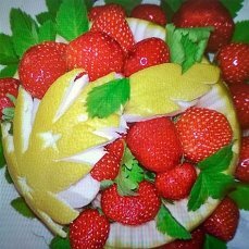 Украшаем стол и едим красиво. Летний вариант на 1 картинке: памело и клубника. Вкусно, полезно, просто и красиво. Займет не больше часа. В конце лета, когда начнется пора арбузов, можно удивлять гостей вот такими шедеврами. Для этого понадобится книга для карвинга, ножи из набора для карвинга, либо видео мастер-класс, который всегда можно скачать с интернета и научиться вырезать. А это просто лук и болгарский перец так может преобразить любой стол! Автор: Вера Желтова
