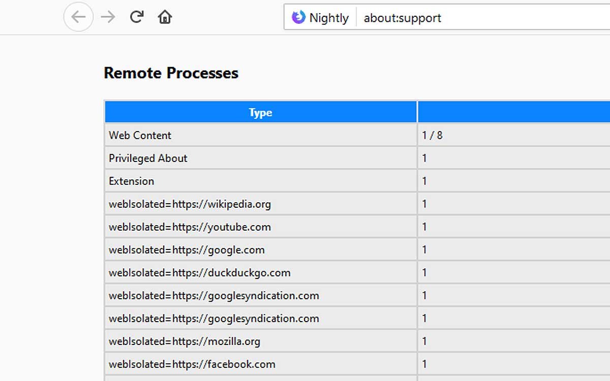 Технологию так называемого разделения процессов в браузере Firefox (схожую во многом с функцией Site Isolation, применяемой в Chrome), компания Mozilla, как известно, впервые официально анонсировала еще в 2016 году в рамках проекта, получившего название Project Fission. Упомянутая технология "Изоляции сайтов", к слову, применяется с прошлого года. Так вот, согласно собственным данным Google, Site Isolation очень положительно влияет на стабильность и безопасность работы Chrome, хоть браузер при этом и "кушает" на 20% больше оперативки. Mozilla перспектива роста и без того заметных аппетитов Firefox, очевидно, не пугает. Разработчики Project Fission пишут, что сейчас активно работают над оптимизацией потребления памяти, чтобы при активации функции разделения процессов браузер тянул её не так много. И это всё мы к тому, что у пользователей Firefox Nightly (c 69-й версии начиная) давеча появилась возможность протестировать Fission в настоящем её виде. То бишь, включить разделение процесс