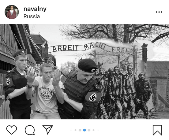 16 июня этого года в своём аккаунте в Инстаграм Навальный сделал пост, обильно сдобренный фотошопом, который попадает под статью о публичном демонстрировании нацистской атрибутики. Сам Навальный, как профессиональный юрист, о чем он регулярно напоминает, не может не знать о последствиях размещения таких постов. К слову, речь в данном случае идет и о репостах. Собственно, вот пост, о котором идет речь Как видно, Навальный намекает, что сотрудники правоохранительных органов, которые задержали его во время незаконного митинга – это как бы «нацисты» в его представлении. А само общество он сравнивает с концлагерем, возбуждая таким образом в своих сторонниках гражданскую ненависть. Иными словами, он играет на чувствах людей. По закону за такой пост Навальному должен грозить штраф до 2 тысяч рублей или арест до 15 суток. Однако, блогер избежал такой участи, чего нельзя сказать о доверчивых сторонниках, которых как раз могут привлечь к ответственности за репосты. И Навальный точно знал,